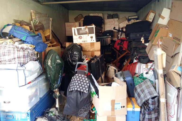 Débarras complet d’un garage encombré à Marseille – cartons, valises, sacs et objets divers à évacuer